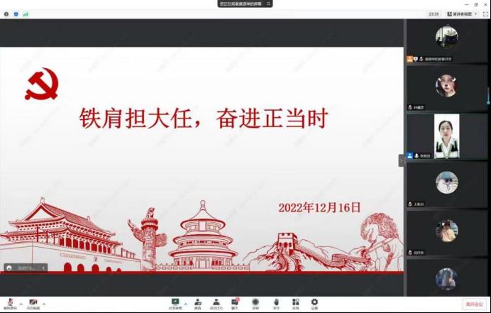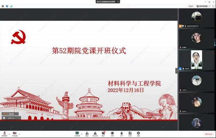 第52期党课学员在线上进行党课培训,于2022年12月16日在线上开展开班仪式。由党委副书记刘永帆,第二学生党支部书记兼组织员张晓君老师,第一学生党支部书记李爽老师、分别对本期学员讲授党课。此次党课培训围绕教育如何做一名合格的大学生党员及学习发挥先锋模范作用,使党员同学们奋进正当时,更加深刻的领悟党的思想。