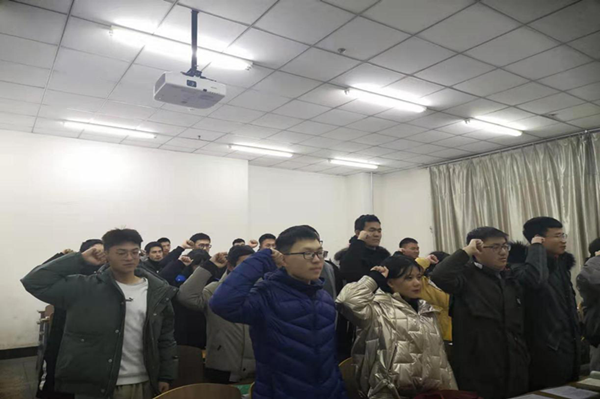 首先,全体团员在庄严肃穆的氛围齐唱团歌.而后,190206团支部书记孙雨竹带领团小组成员对一二九运动的历史开展理论学习,具体讲述一二九运动的背景,过程,结果以及影响,同学们在班会时进行了理性的研讨,积极发表言论,增加了同学们对中国共产党的信心和内心的团结。活动最后一项,190206团支部书记孙雨竹带领全体团员重温入团誓词,不忘初心,用誓词表达了为共青团组织不懈奋斗的坚定决心。