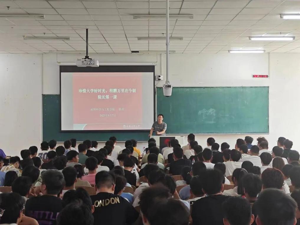 材院网讯(通讯员 姜涛)为进一步加强专业教育,提升同学们对材料专业的认识度,学院于9月7日上午9点在东阶201教室举办院长第一课“珍惜大学好时光,鹏程万里在今朝”主题报告会,报告会由学院院长韩英主讲,2023级全体新生参加了报告会。