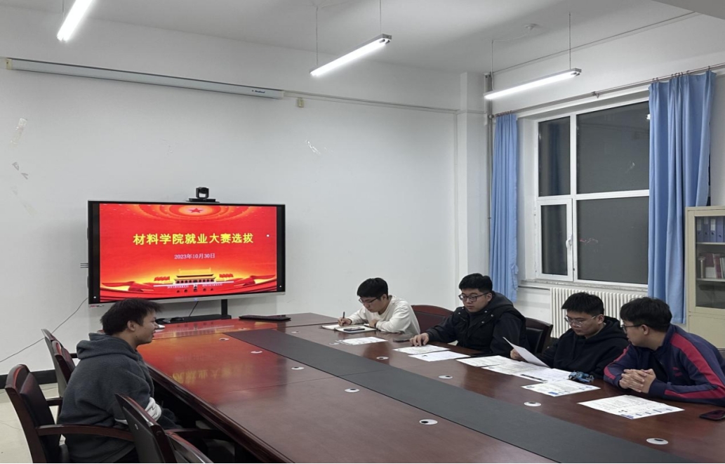 在材料楼425举办研究生职业生涯规划大赛,学院第三届研究生会主席团成员韩振生、刘星宇,第四届研究生主席团成员杨博然、苏思铜担任评委,学院55名研究生参赛。
