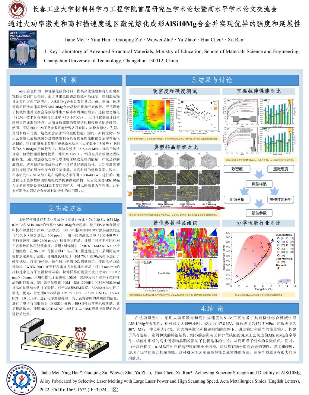 通过大功率激光和高扫描速度选区激光熔化成形AlSi10Mg合金并实现优异的强度和延展性-91大赛 首届研究生学术论坛暨高水平学术论文交流会