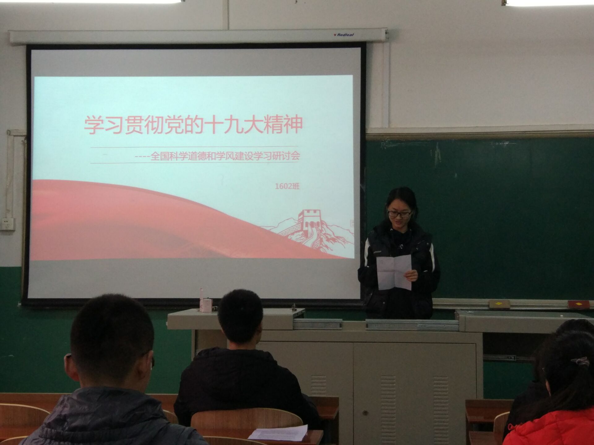 2017年12月7日,研究生201602班党支部再材料楼202举办了专题讲座,201602班全体同学参加了活动,材料科学与工程专业团支书王宇彤,积极分子高大伟、张莹,研究生学生会主席隋小波,研究生团委副主席张上达5位同学做了题为“学习贯彻党的十九大精神-全国科学道德和学风建设学习研讨会”的专题讲座。