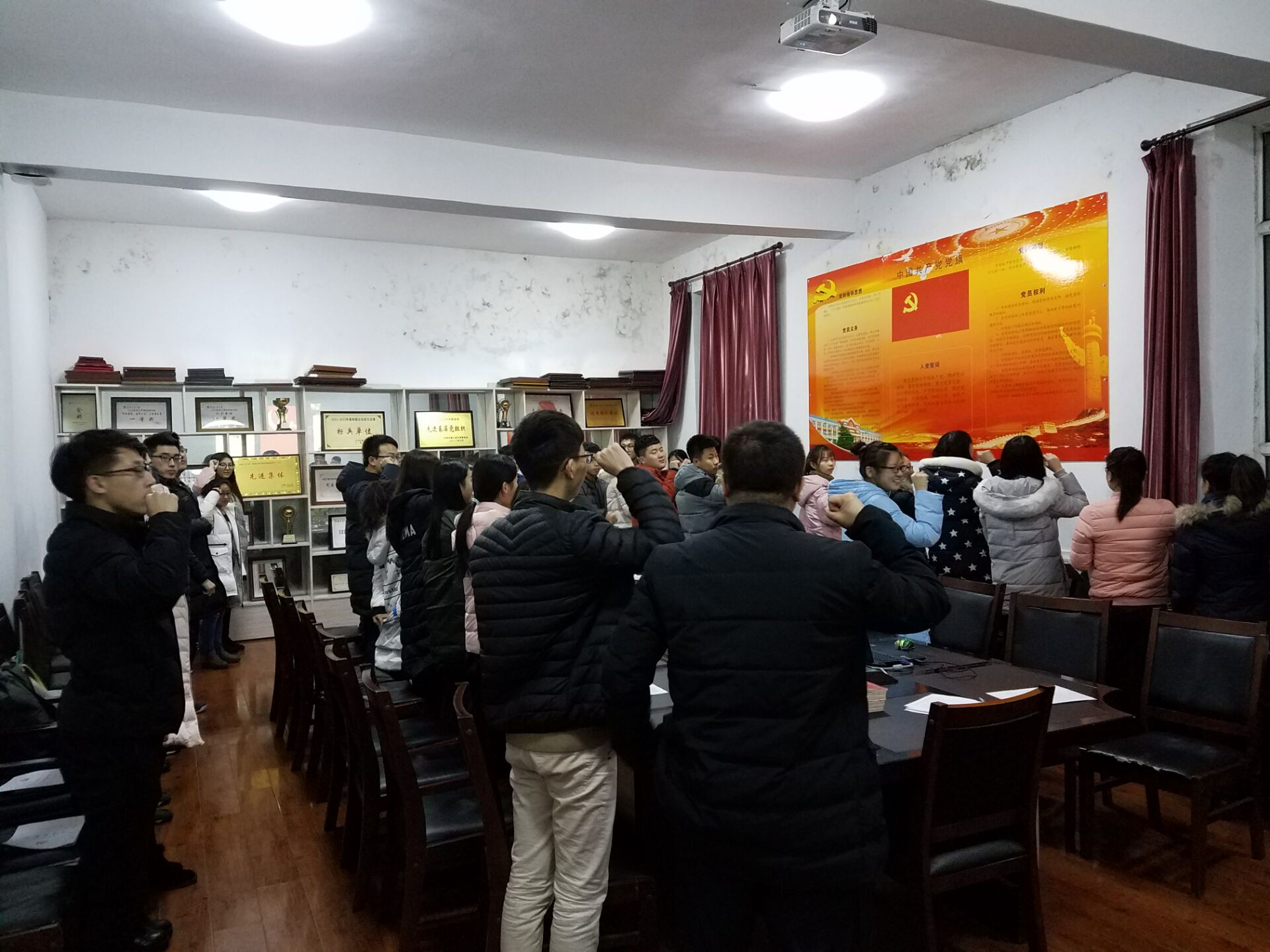 最后,学生党支部书记万杨同志对以上同学提出几点希冀和要求:希望同学们在以后的学习工作中有集体荣誉感,从每个人做起,应具备良好的思想,端正入党思想,突显党员作用,时刻提醒自己的党员身份入党前后保持一致,做一名真正合格的党员。