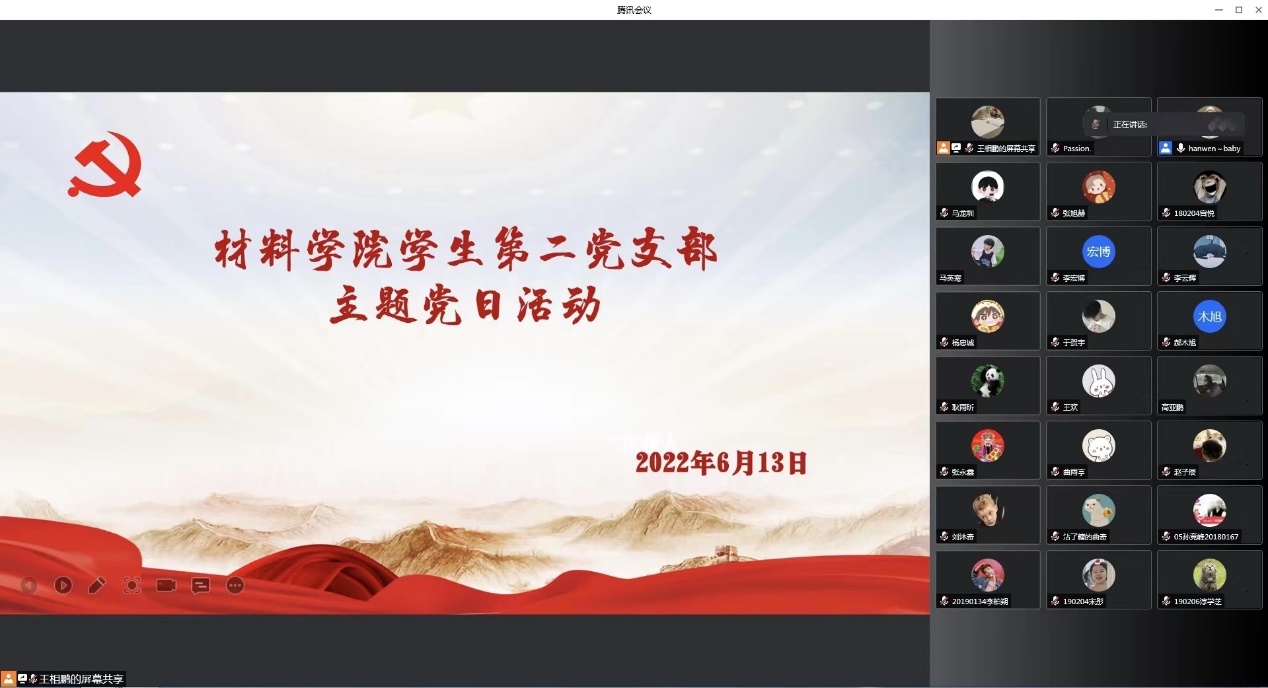 材院网讯(通讯员 范金芝)为深入开展党史学习教育弘扬爱国主义精神,激励和引领广大青年青春向党,2022年6月13日,学校组织教工党员和部分学生党员代表,线上观看“青春向党”系列短视频,传承先辈的革命精神。九万里风鹏正举,青春奋进正当时。