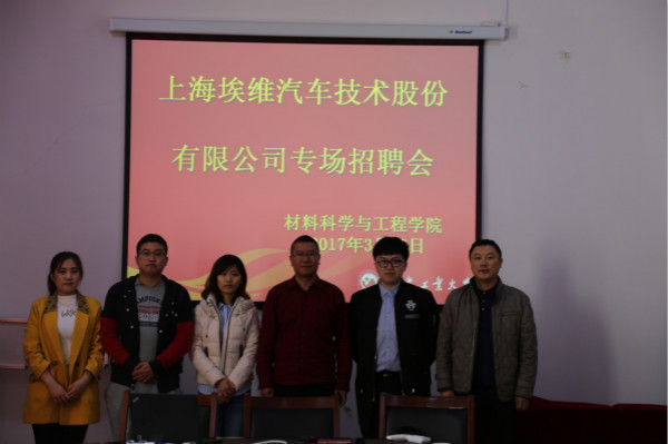 在学院5楼会议室举办了专场招聘会。上海埃维汽车技术股份有限公司前来学院招贤纳士。学院党委副书记吴文东、团委书记邹绍岩、辅导员张晓君接待了公司派来的长春地区人事专员隋兵兵、区域销售经理宋吉良、长春D058项目车身负责人潘巍一行三人。公司对前来应聘的13级毕业生进行了初试、面试,解答了学生们咨询的相关问题,同时也向同学们传递了公司的发展历史、主营产业及公司未来发展方向等信息。