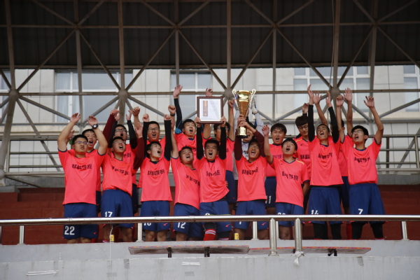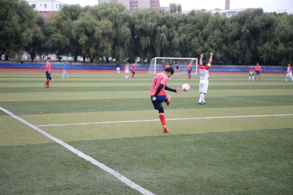 大学生足球联赛决赛在我校南湖校区足球场展开。本场比赛由91大赛