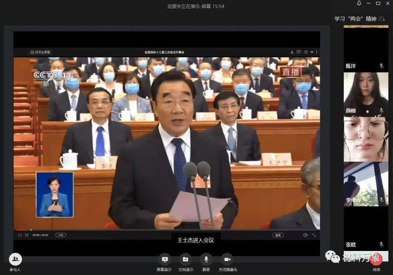 于5月28日在企业微信上召开线上学习“两会”精神主题会议。参会人员有17级所有学生党员、18届团学联学生主要干部。会上,观看“两会”开闭幕式及政府工作报告等有关报道,学习“两会”精神,并互相交流学习体会。