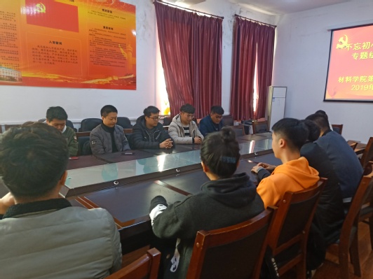 会议主要以轮流交谈的形式进行,学习了以习近平总书记不忘初心牢记使命的重要论述:习近平总书记强调,为中国人民谋幸福,为中华民族谋复兴,是中国共产党人的初心和使命,是激励一代代中国共产党人前赴后继、英勇奋斗的根本动力。习近平指出,开展这次主题教育,是用新时代中国特色社会主义思想武装全党的迫切需要,是推进新时代党的建设的迫切需要,是保持党同人民群众血肉联系的迫切需要,是实现党的十九大确定的目标任务的迫切需要。习近平指出,“守初心、担使命,找差距、抓落实”的总要求,是根据新时代党的建设任务、针对党内存在的突出问题、结合这次主题教育的特点提出来的。习近平强调,理论学习有收获,重点是教育引导广大党员干部在原有学习的基础上取得新进步,加深对新时代中国特色社会主义思想和党中央大政方针的理解,学深悟透、融会贯通,增强贯彻落实的自觉性和坚定性,提高运用党的创新理论指导实践、推动工作的能力。大家在研读习近平的重要论述后,结合自身的实际情况,分别发言。考研的党员谈到“在考研的关键时期,自己要继续努力,不断奋斗,以敢打硬仗的精神状态不断奋斗”;“要不断学习、做到处处做表率、事事当先进,不忘党员的先锋模范作用,在考研路上遇到任何困难都不怕”。