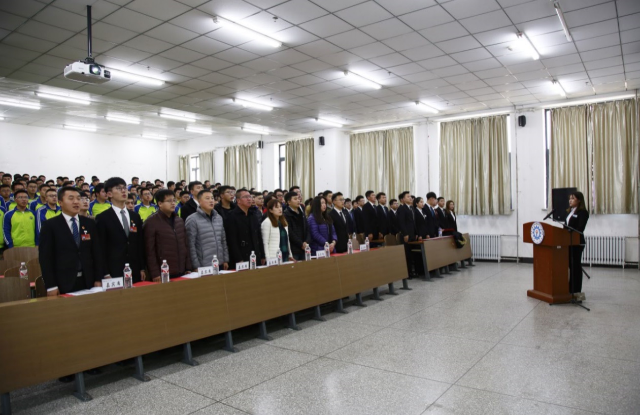 随后,在团委组织部长王硕的带领下,全体新任学生干部庄严宣誓。最后,学院党委副书记吴文东致辞,他代表学院党委与学工办对新一届学生组织的成立表示祝贺,同时对学生干部提出希望与要求,他希望刚刚上任的新一届团学干部能够继承和发扬学院现有的优良传统,不断创新工作模式,不断改进工作方法,不断拓宽工作思维,他强调学生干部一定不要忘记自己加入学生组织和担任学生干部的初心,通过不断的强化自身建设,牢记为同学们服务、为学院服务、为学校服务的使命,精诚团结,为91大赛