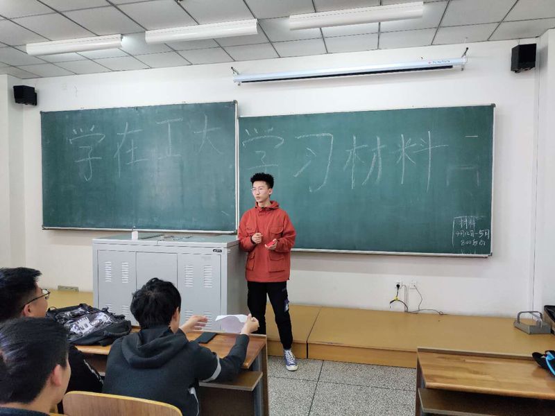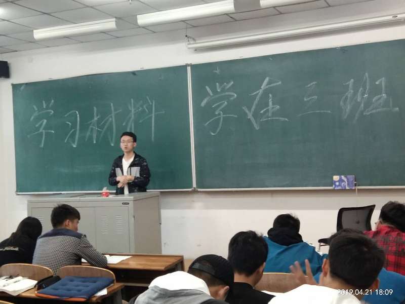 180204班于4月19日下午三点半在1428召开“学在工大,学习材料”主题班会,针对课堂纪律,寝室内务,违禁电器开展,并鼓励同学积极参加活动和学习“青年大学习”,提出由学习能力较强的同学为大家整理知识点等建议。