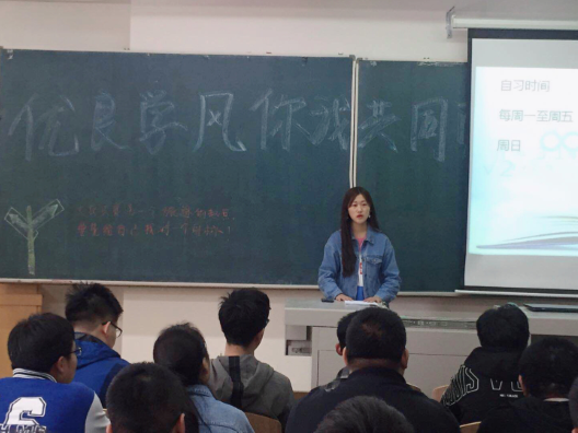 180202班于4月19日下午二点半在1304召开“优良学风,你我共同营造”学风建设主题班会,针对自习情况,消防安全,重修和寝室卫生展开。