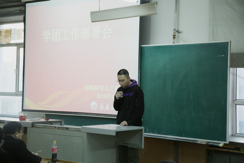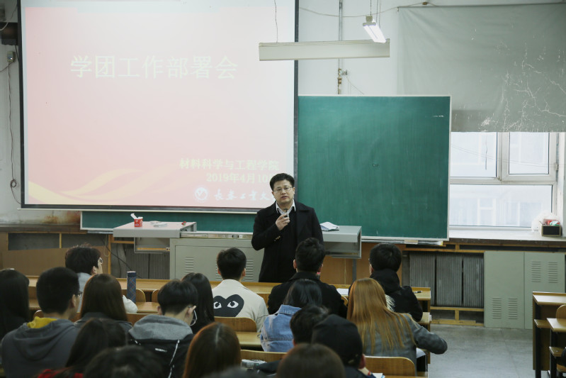 于材料楼综合三教室召开2019年学团工作部署会,进一步统一思想,凝心聚力,研究和部署学院2019年学团工作。学院团委书记万杨主持会议并讲话,全体学生干部参加了会议。
