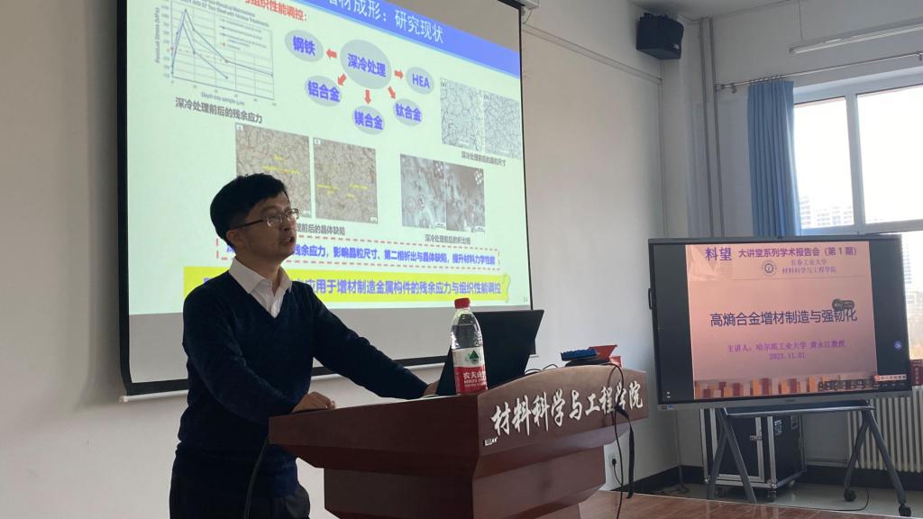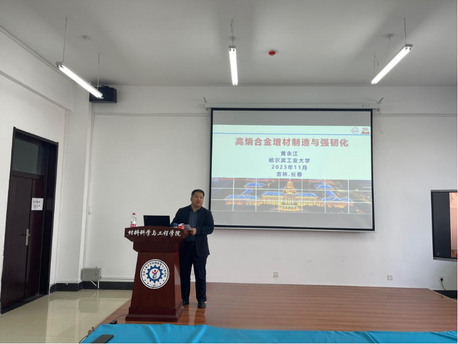黄永江教授应邀进行了“高熵合金增材制造与强韧化”专题报告的精彩分享。报告中,黄教授介绍了多道激光熔化沉积后深冷处理达到残余应力分布控制和晶粒细化,激光冲击强化诱导梯度结构等高熵合金强韧化领域做出的引领性成果。报告现场与会师生就相关学术问题进行了热烈的讨论。