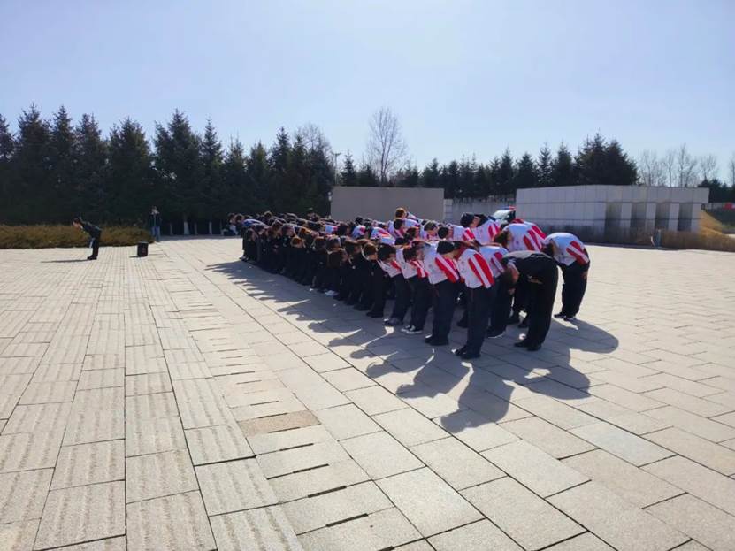 同学们向烈士行鞠躬礼